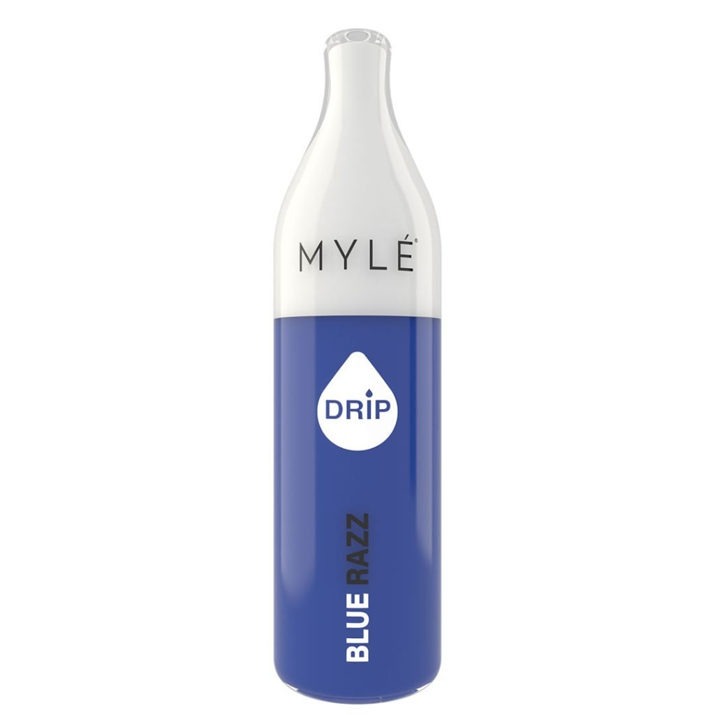 The bottle-shaped Drip device features a double injection mold that has a bright, glossy, colorful, smooth sleek feel and is meant to be seen as it’s not considered compact or pocket friendly. The Drip device has a large 6ml tank which will deliver 2500 puffs, a 1.75 ohm coil for large vapor production and an 850 mAH battery – so it will last. The device is disposable, not rechargeable with every pull providing a satisfying cloud of flavor saturated goodness – something our customers have come to love in MYLE devices.